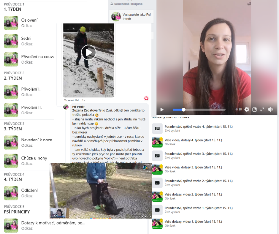 Co to znamená? Přes rok jsem ve skupině DENNĚ odpovídala na dotazy pejskařů a dávala zpětnou vazbu na jejich videa z tréninků. A další rok jsem ve skupině prováděla týdenní mentoring k online kurzu Poslušný pes.